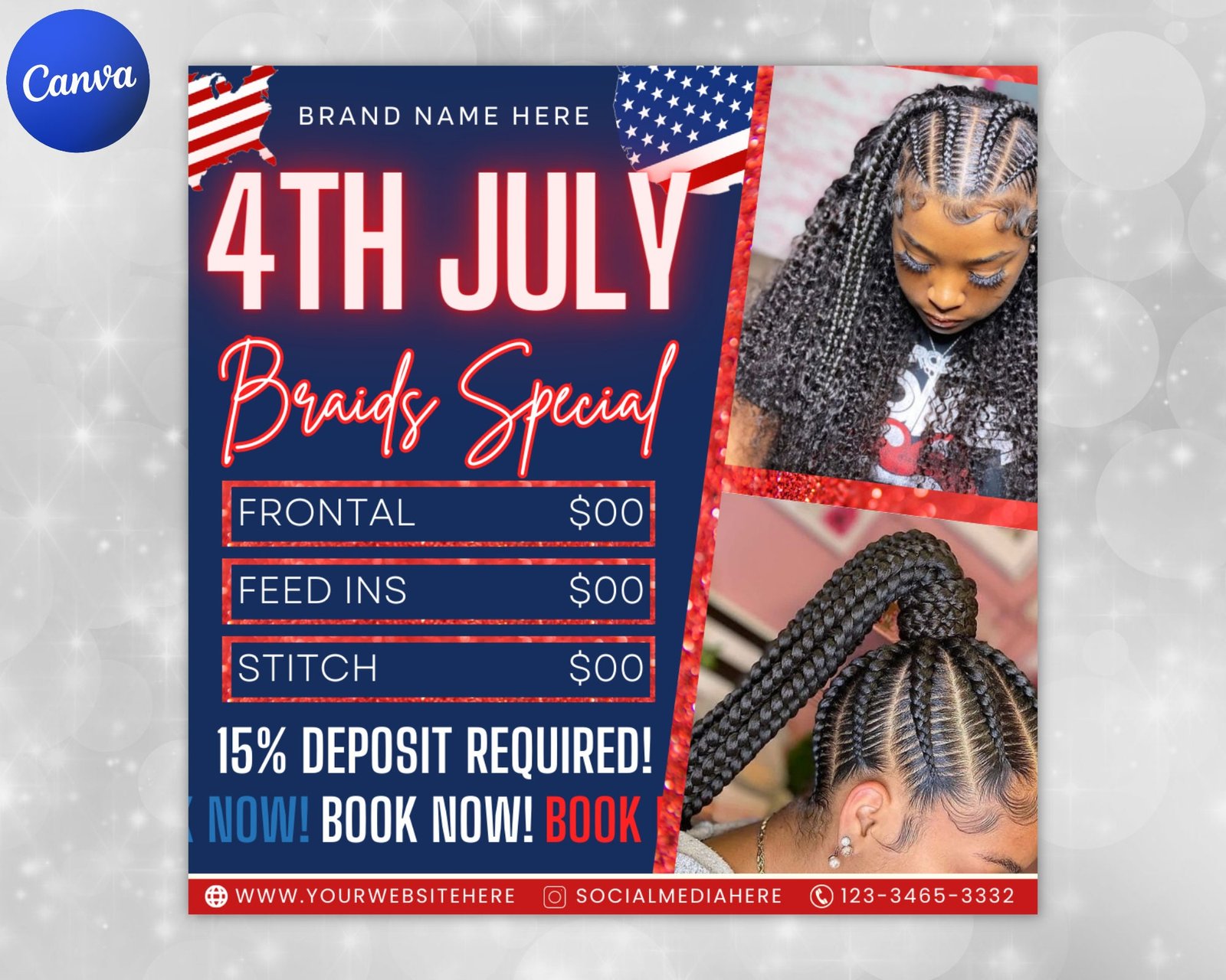 Celebrate the 4th of July in style with our amazing 4th of July Hair Deals Flyer