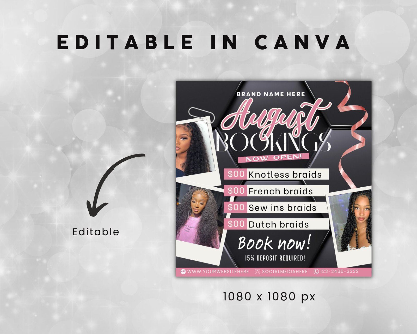 Purchase & Access – After payment, you’ll receive an email with a link to your editable design (sent to your Etsy-registered email).