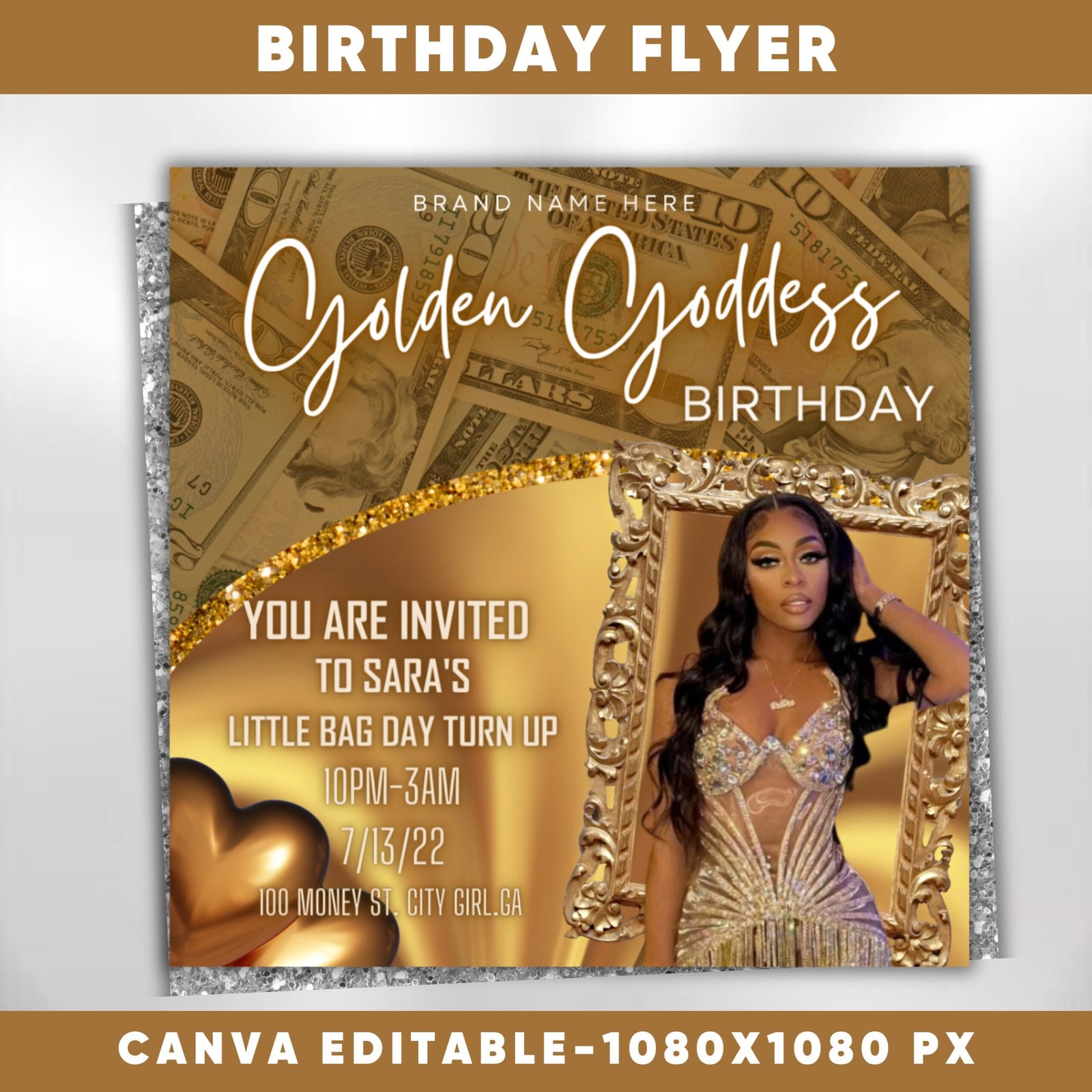 Welcome to Golden Goddess Bday, the ultimate birthday flyer for your special day! H