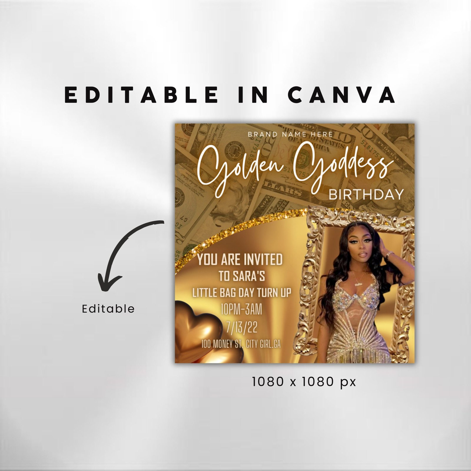 Birthday Flyer Template DIY Golden Goddess Bday Social