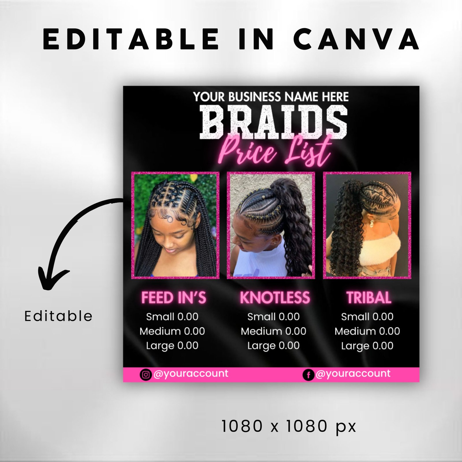 Our braids pricelist flyer template is expertly designed to be both eye-catching and functional, ens