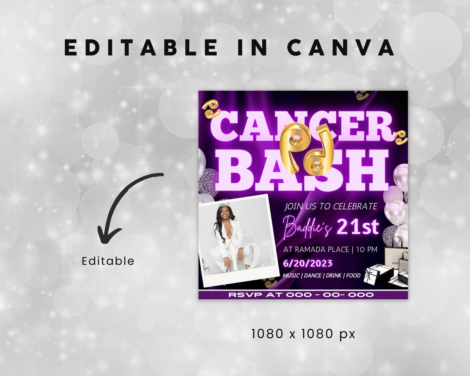 Cancer Birthday Flyer Birthday Template Birthday Girl Party
