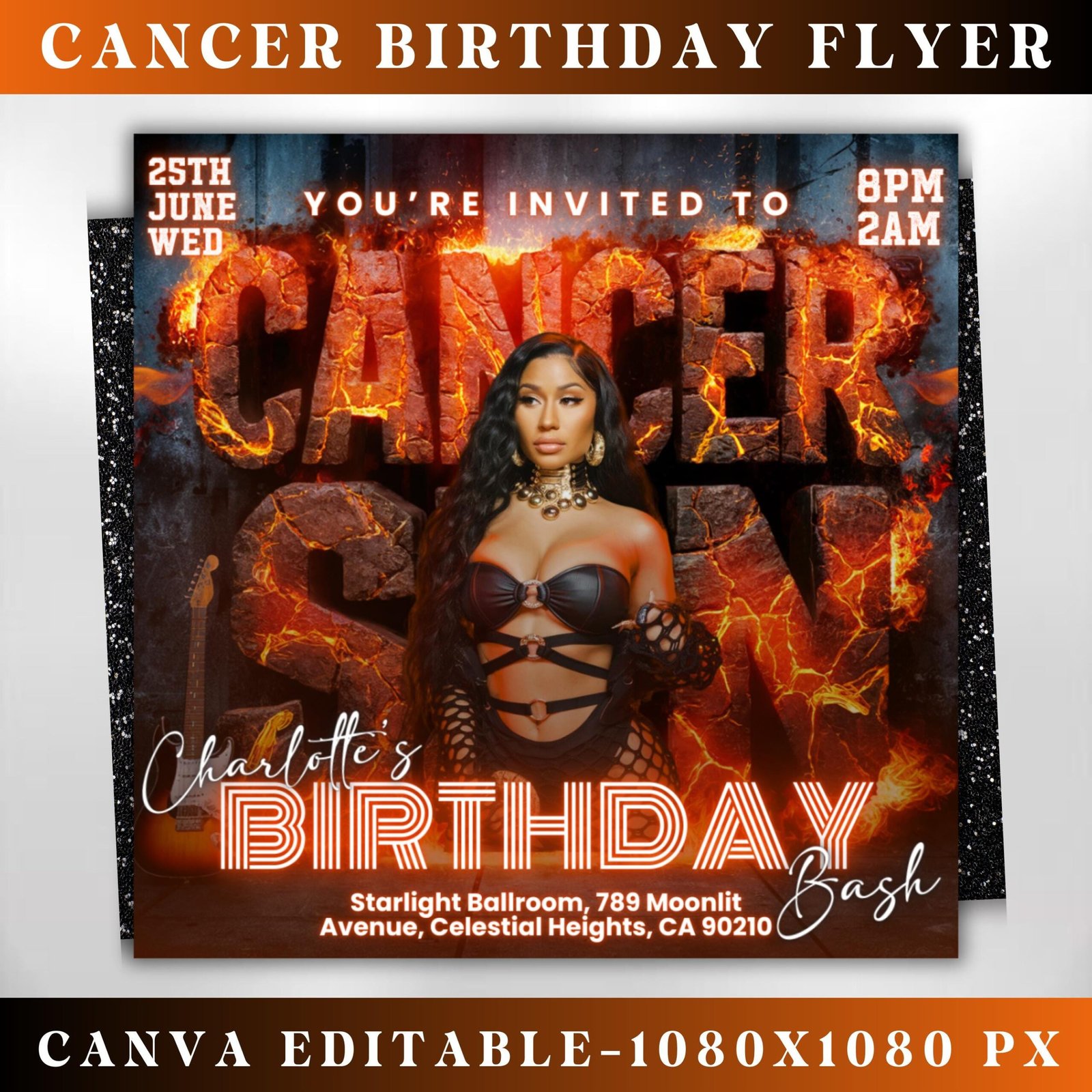 Celebrate like a true Cancer with this elegant Cancer Birthday Flyer Template! Perfect for promoting
