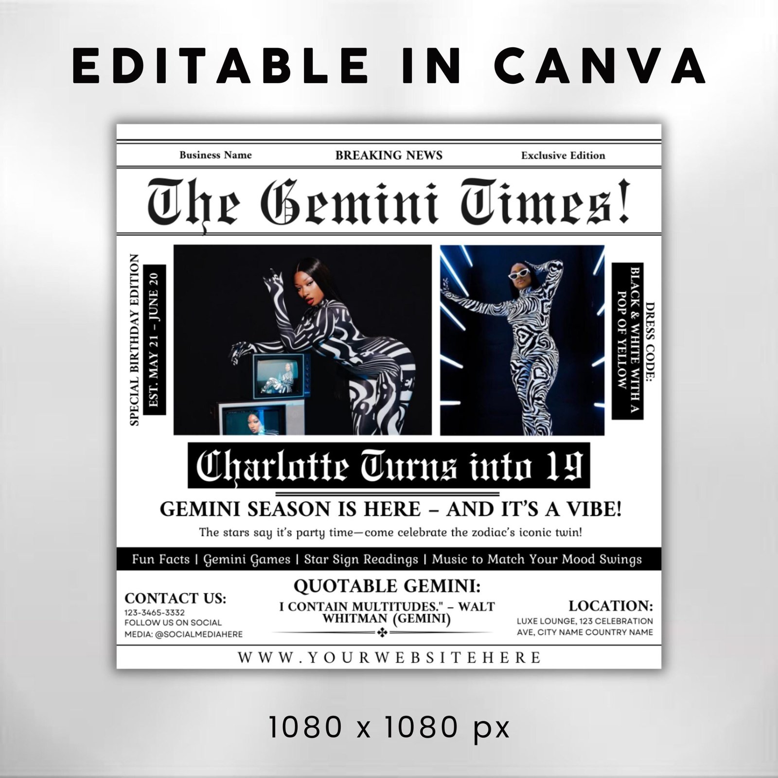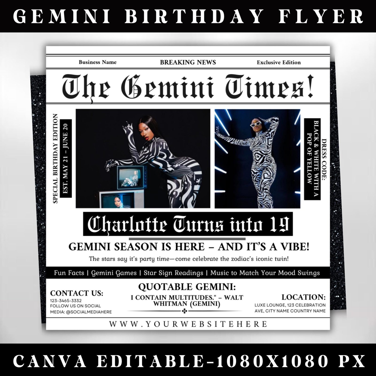 Gemini Birthday Flyer Newspaper Birthday Template Birthday Girl