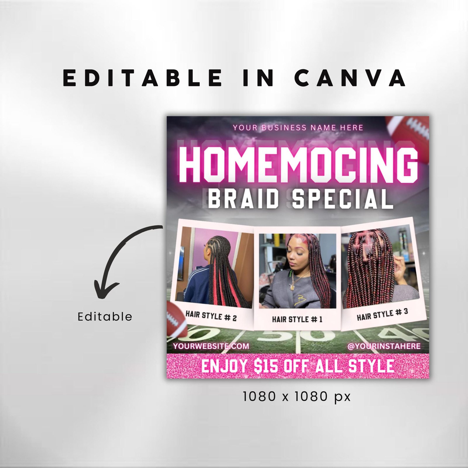 Purchase & Access – After payment, you’ll receive an email with a link to your editable design (sent to your Etsy-registered email).