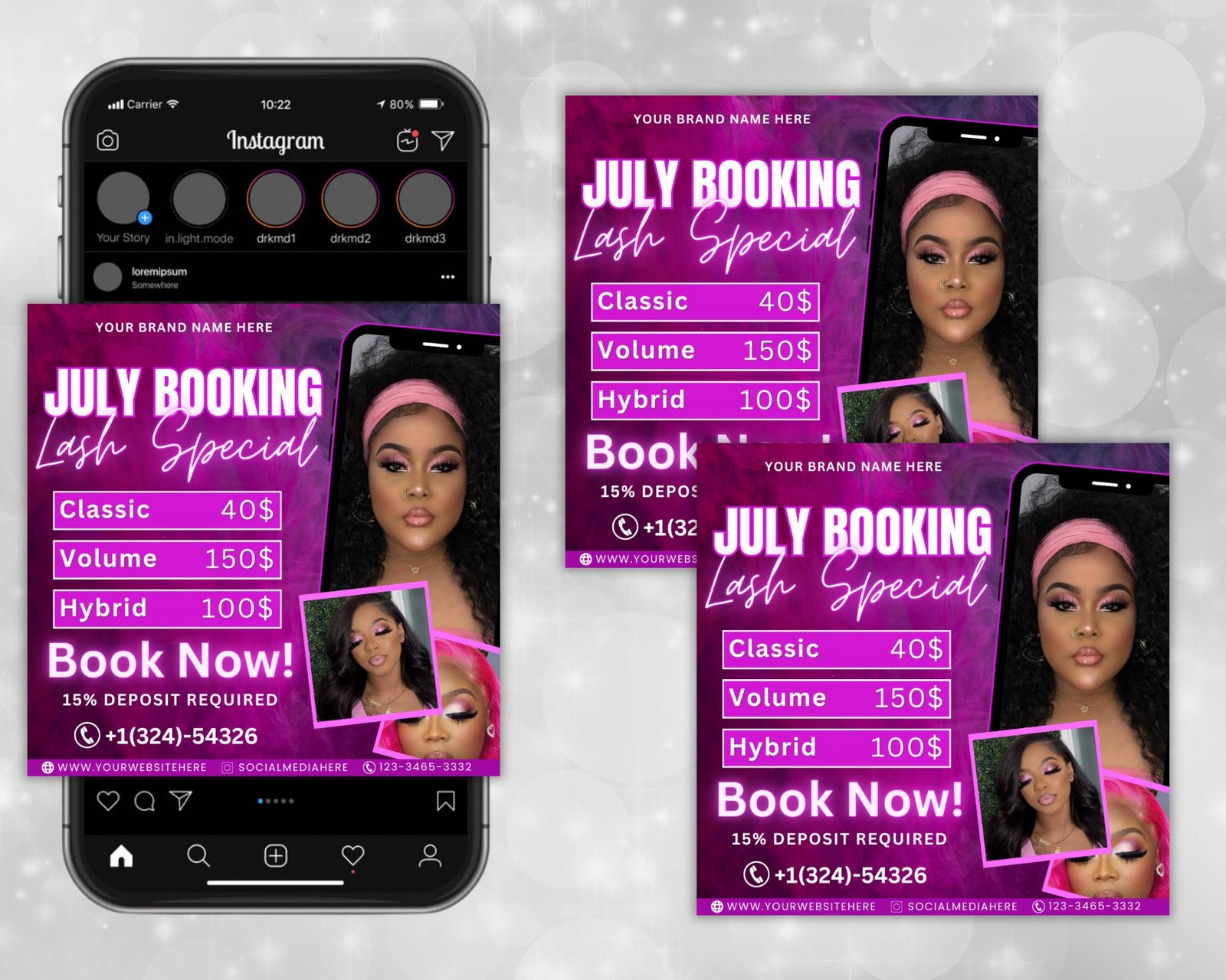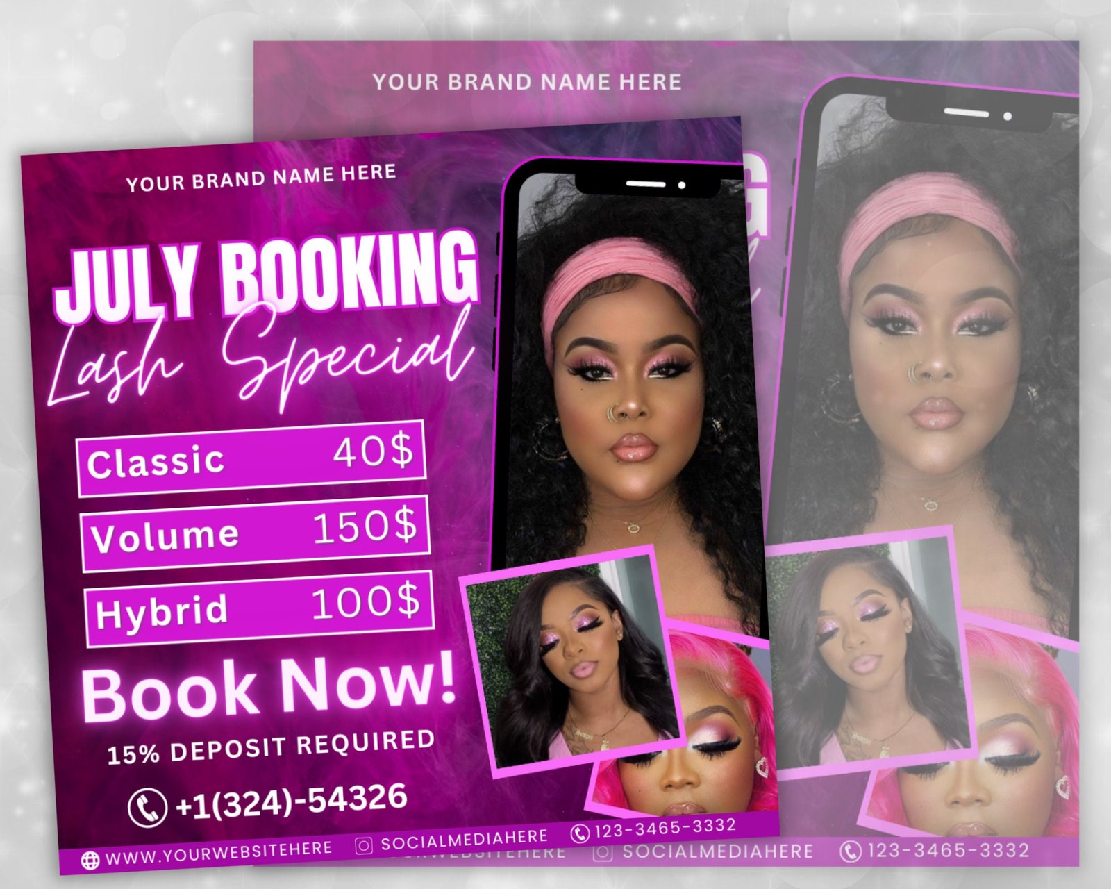 Make your summer lash business pop with the July Booking Flyer from our digital collection! This mus