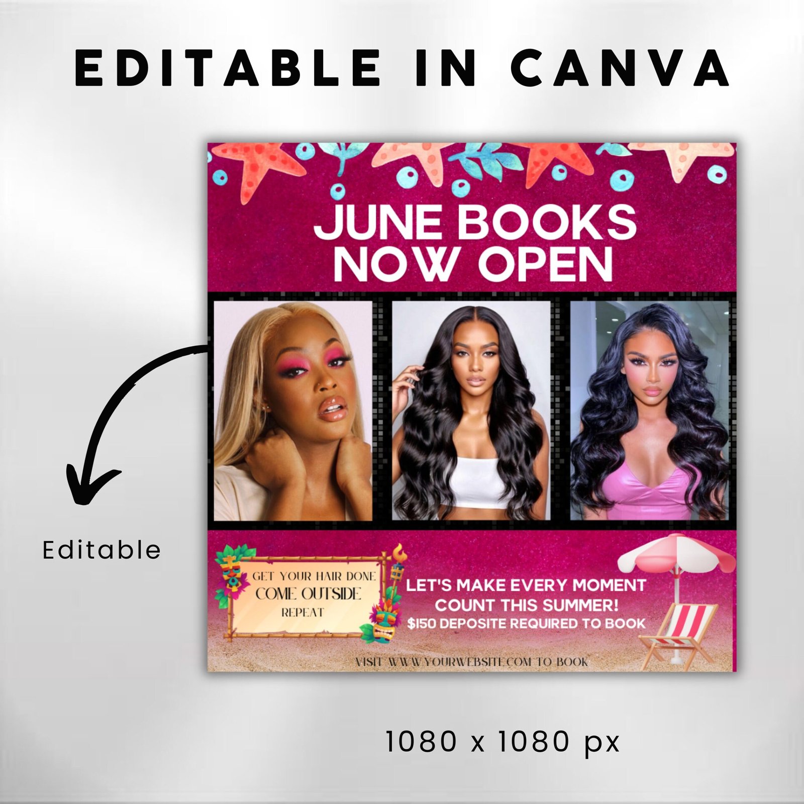 Introducing the June Booking Flyer, a stunning and eye-catching MUA Flyer to help kickstart your sum