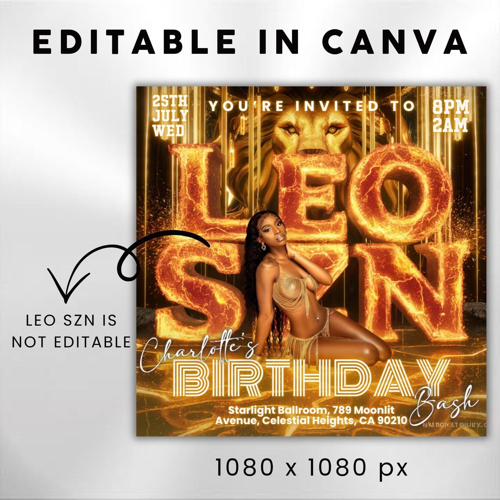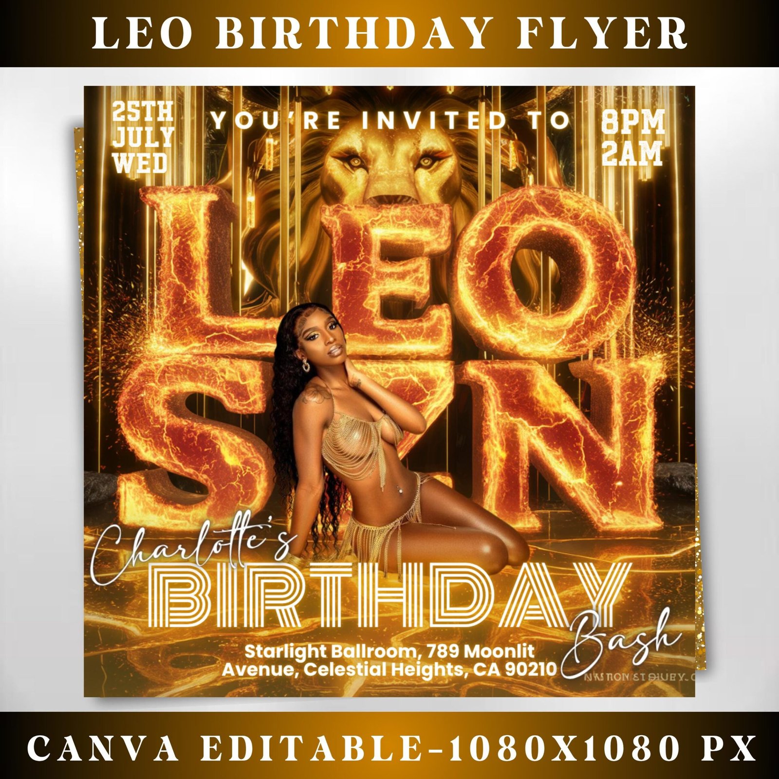 Leo Birthday Flyer Birthday Template Birthday Girl Party