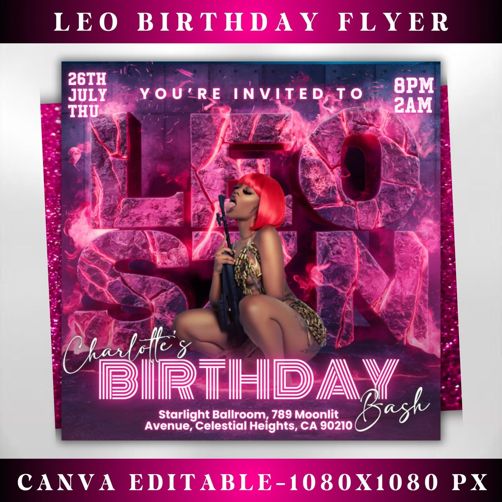 Leo Birthday Flyer Leo Party Invite Birthday Girl