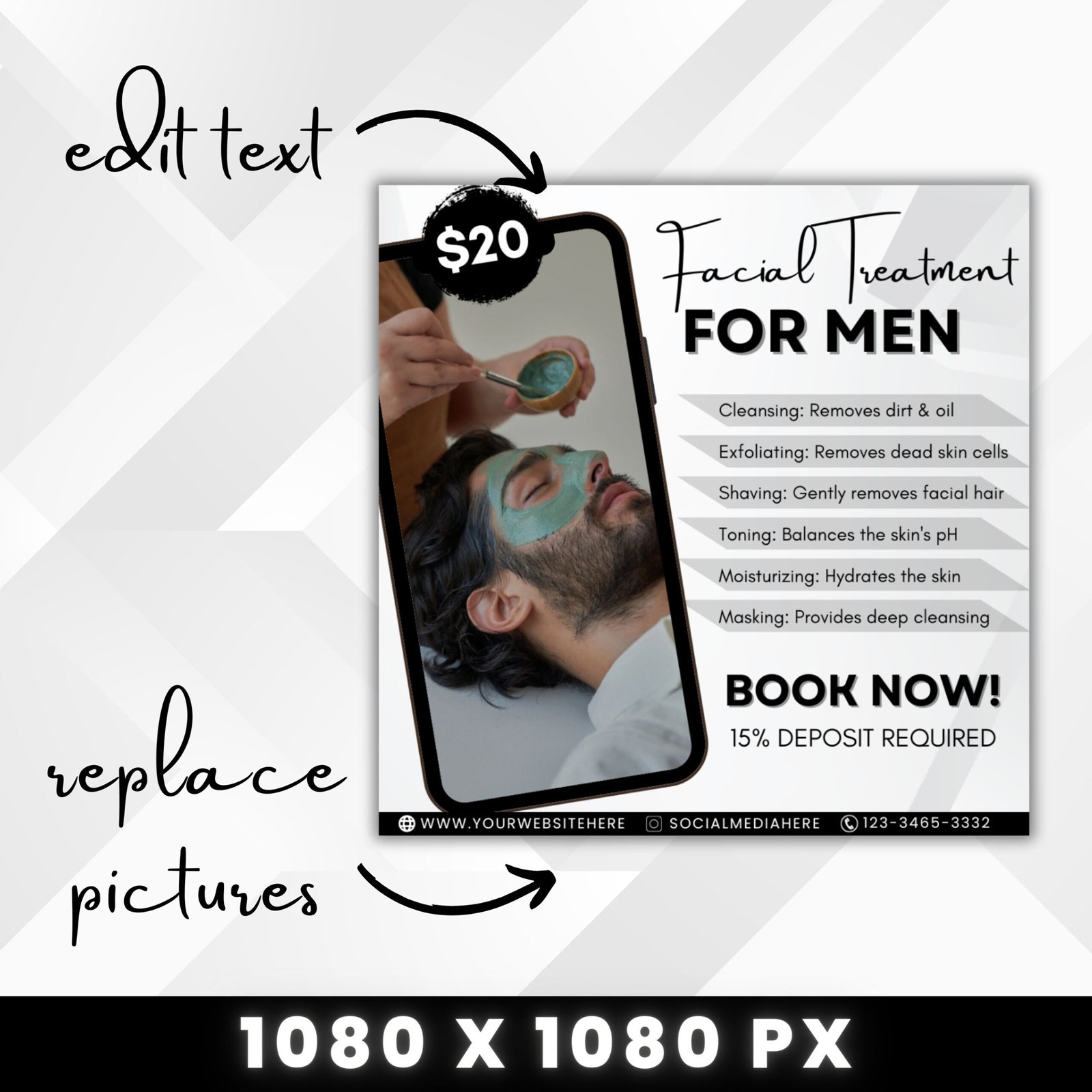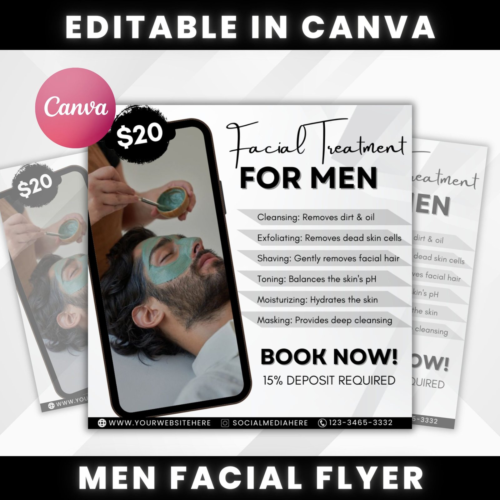 Introducing our Men’s Facial Specials Flyer DIY Canva Template – a must-have for all beauty and well