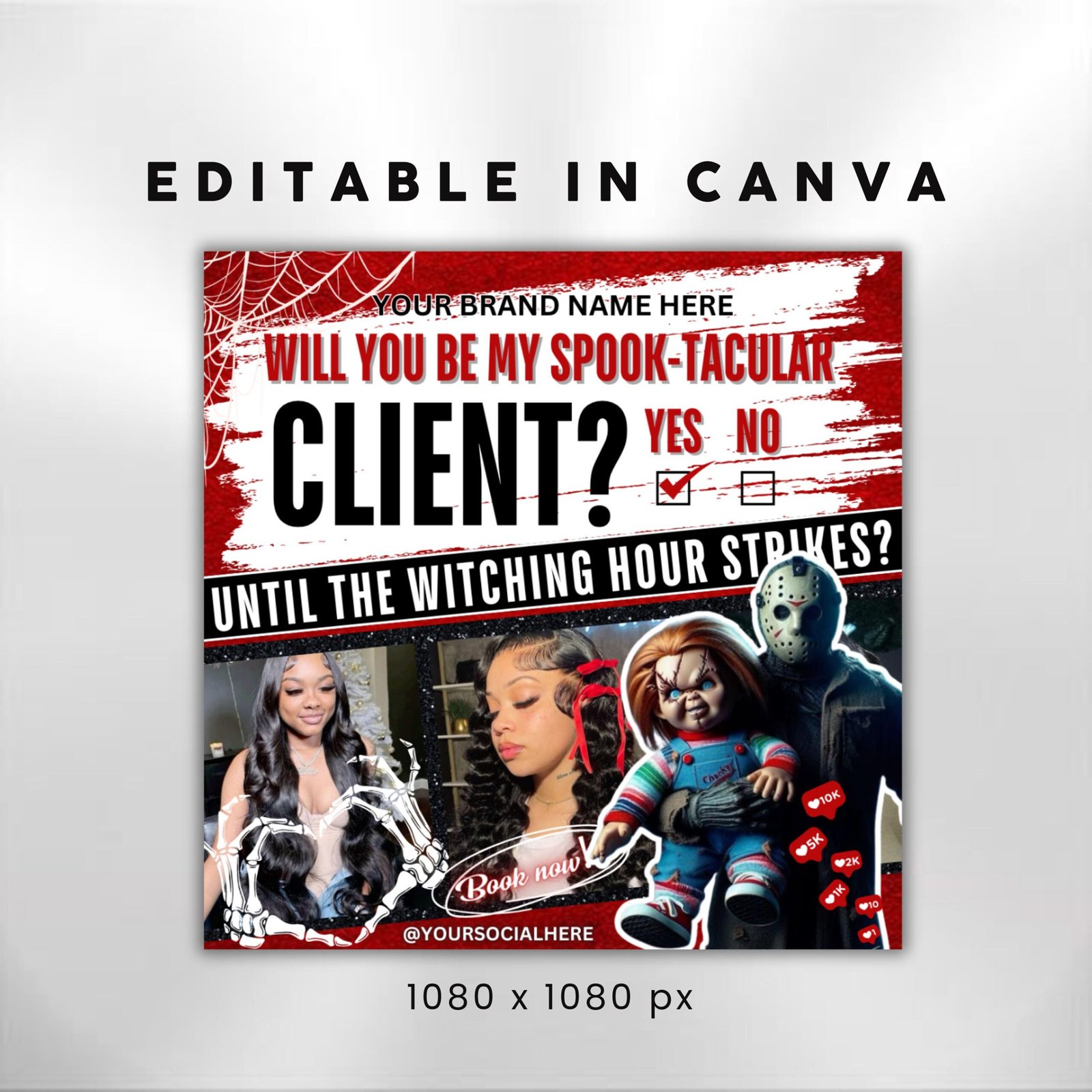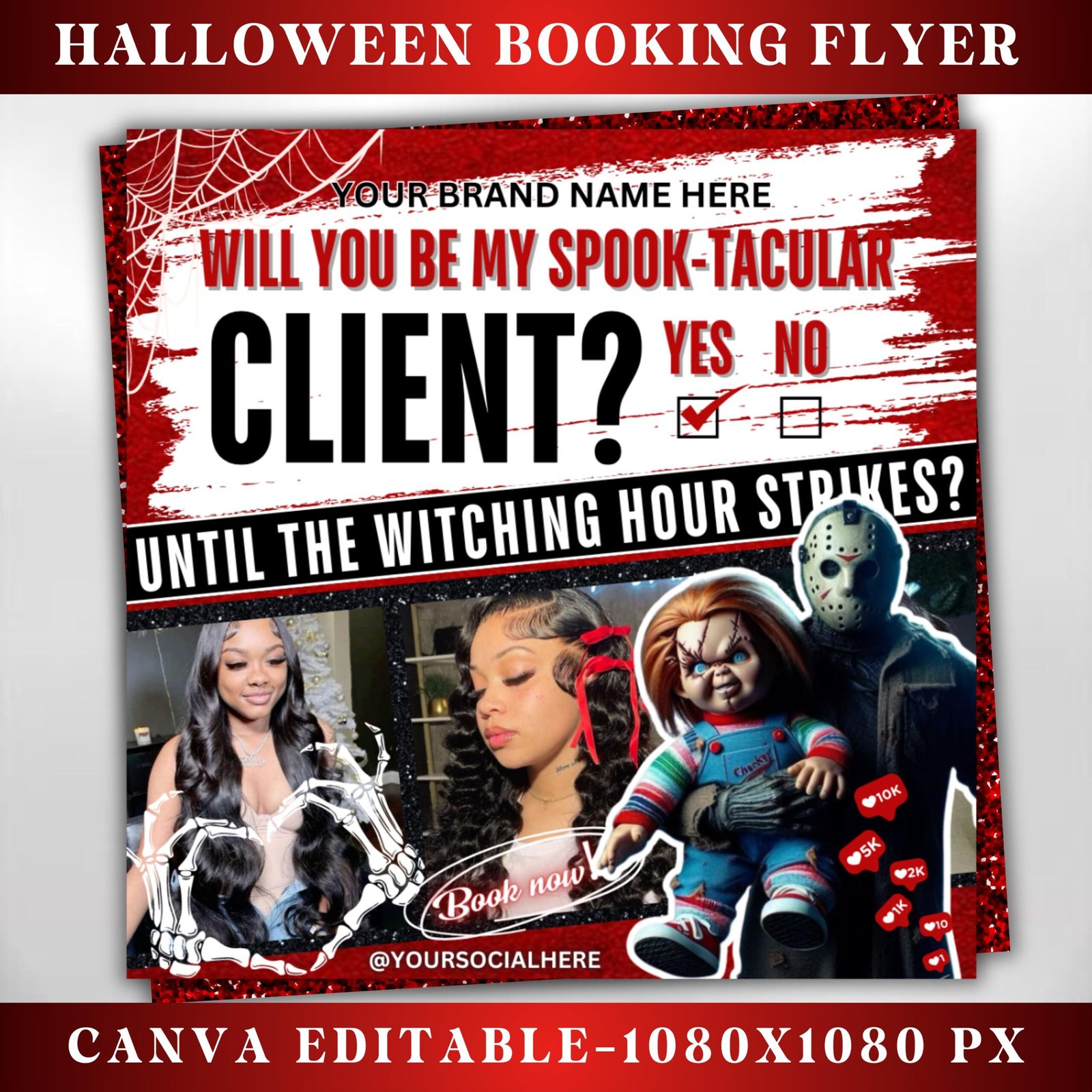 Get your salon fully booked this Halloween with our eye-catching Halloween Booking Flyer template! P