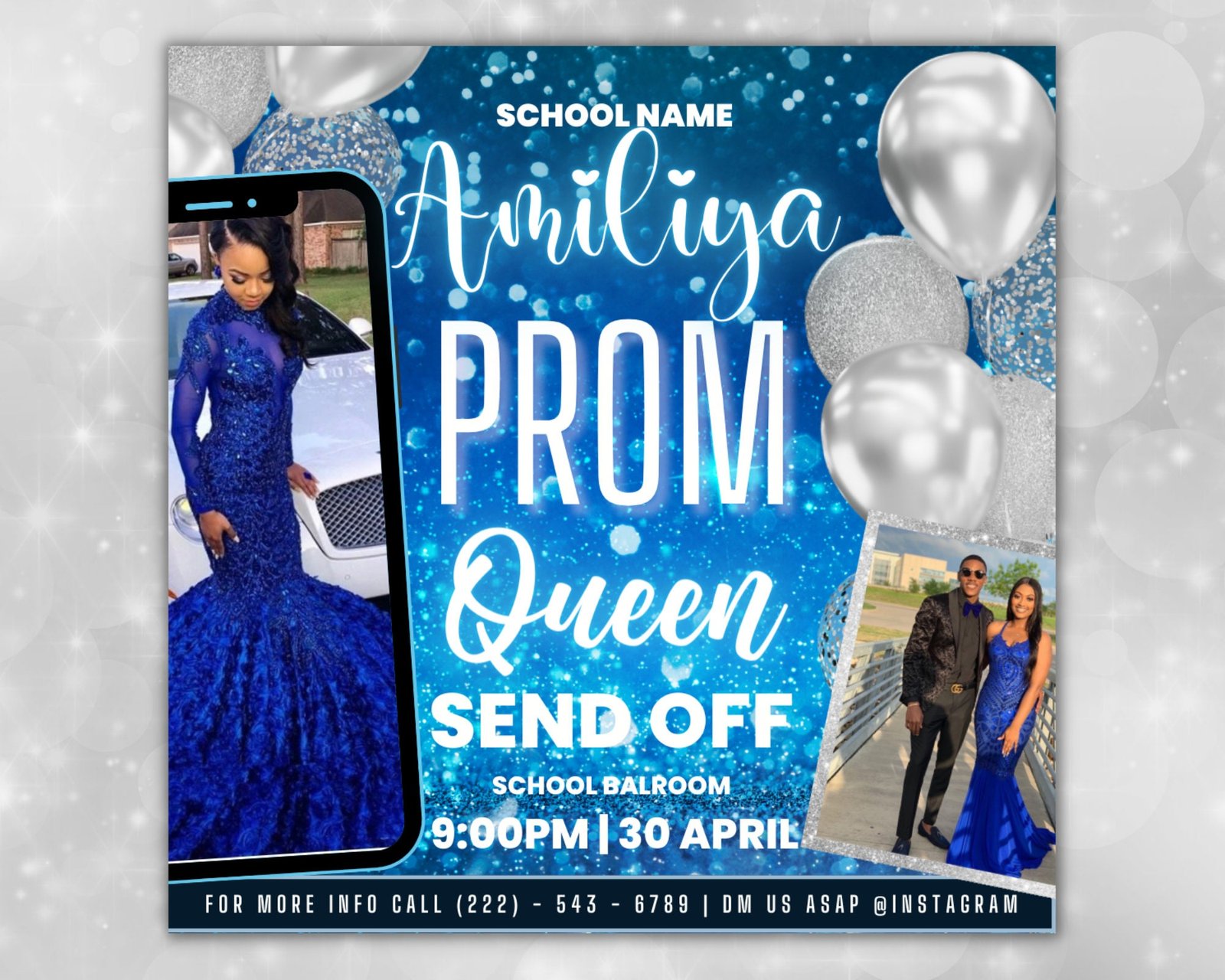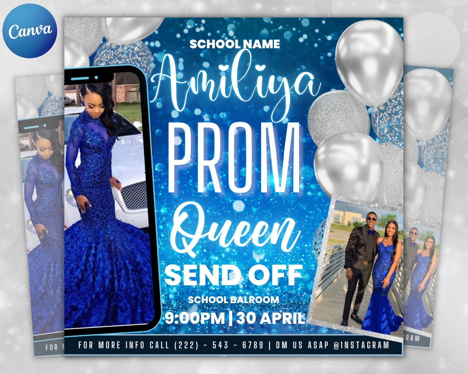 Easily customize this printable Prom Invitation flyer template along with your data and branding in