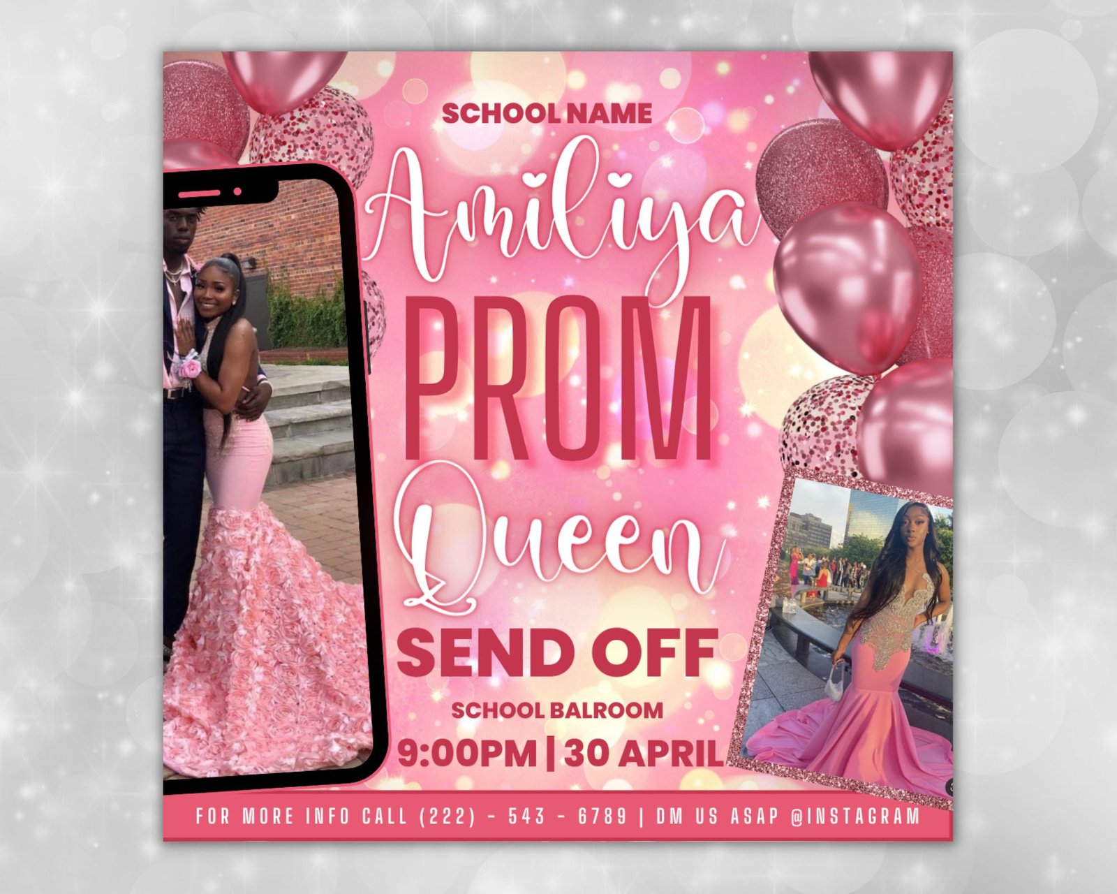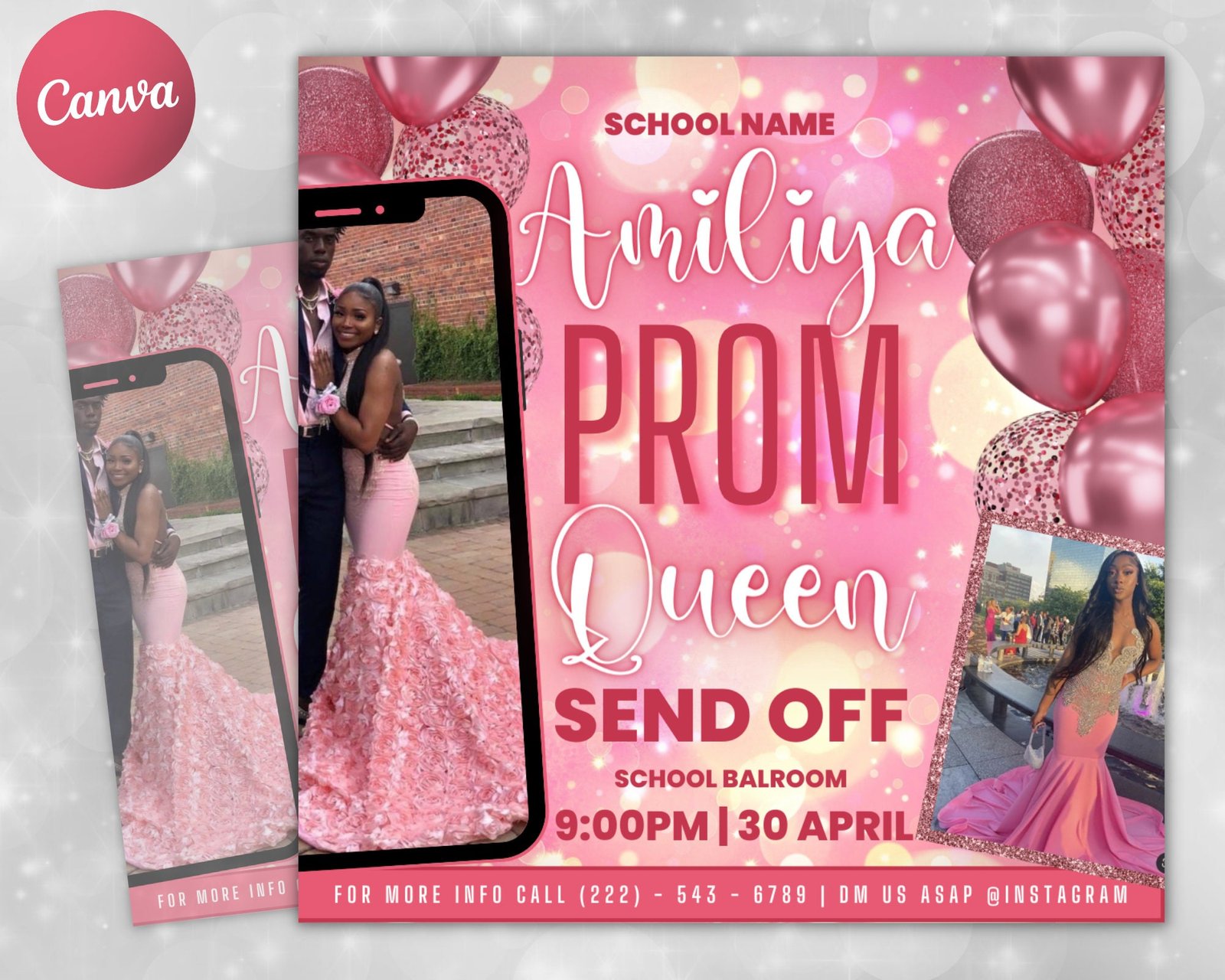 Easily customize this printable Prom Invitation flyer template along with your data and branding in